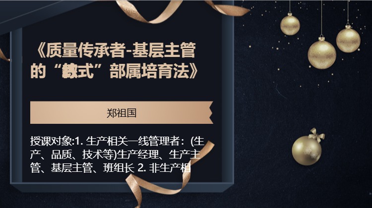 授课对象:1. 生产相关一线管理者:(生产、品质、技术等)生产经理、生产主管、班组长 2. 非生产相关一线管理