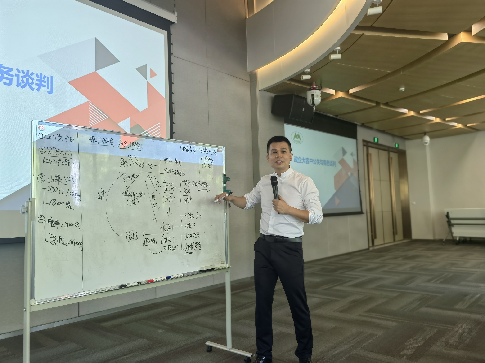 2024年5月16日,黄鑫亮老师在湖州某能源集团讲授《政企大客户公关与商务谈判》,如何与政企客户进行有效的沟通和谈判,掌握关键技巧,提升公关能力等;通过案例分析和实践演练,让学员更加深入了解政企客户的需求和关注点,为成功合作打下坚实基础。