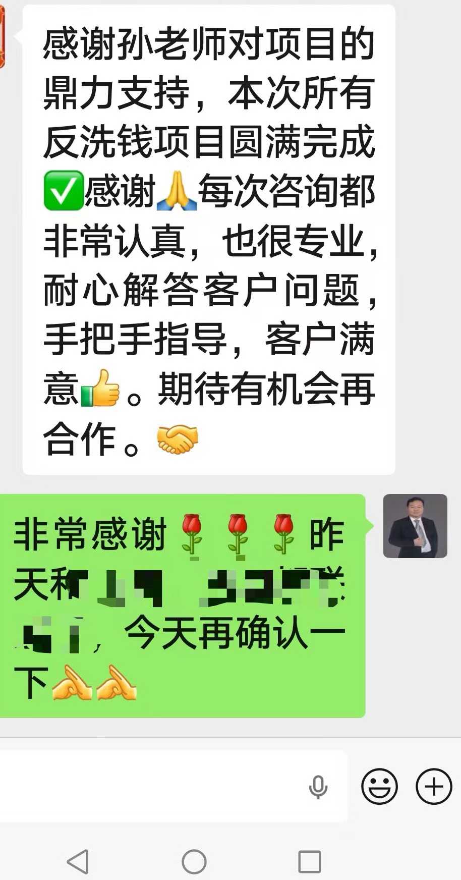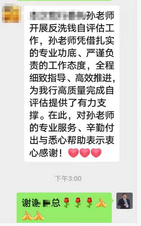 可以全面深入指导银行的反洗钱工作等银行复杂业务,包括组织自查、优化流程和全员培训等。[烟花][烟花][烟花]质量第一是孙老师的永远追求,强大实力+认真负责,获得机构和银行的好评如潮[玫瑰]